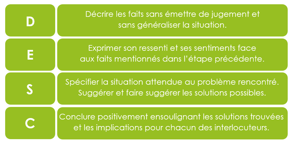 – Il convient d’utiliser le « Je » pour exprimer son ressenti de manière authentique, libre et positive: