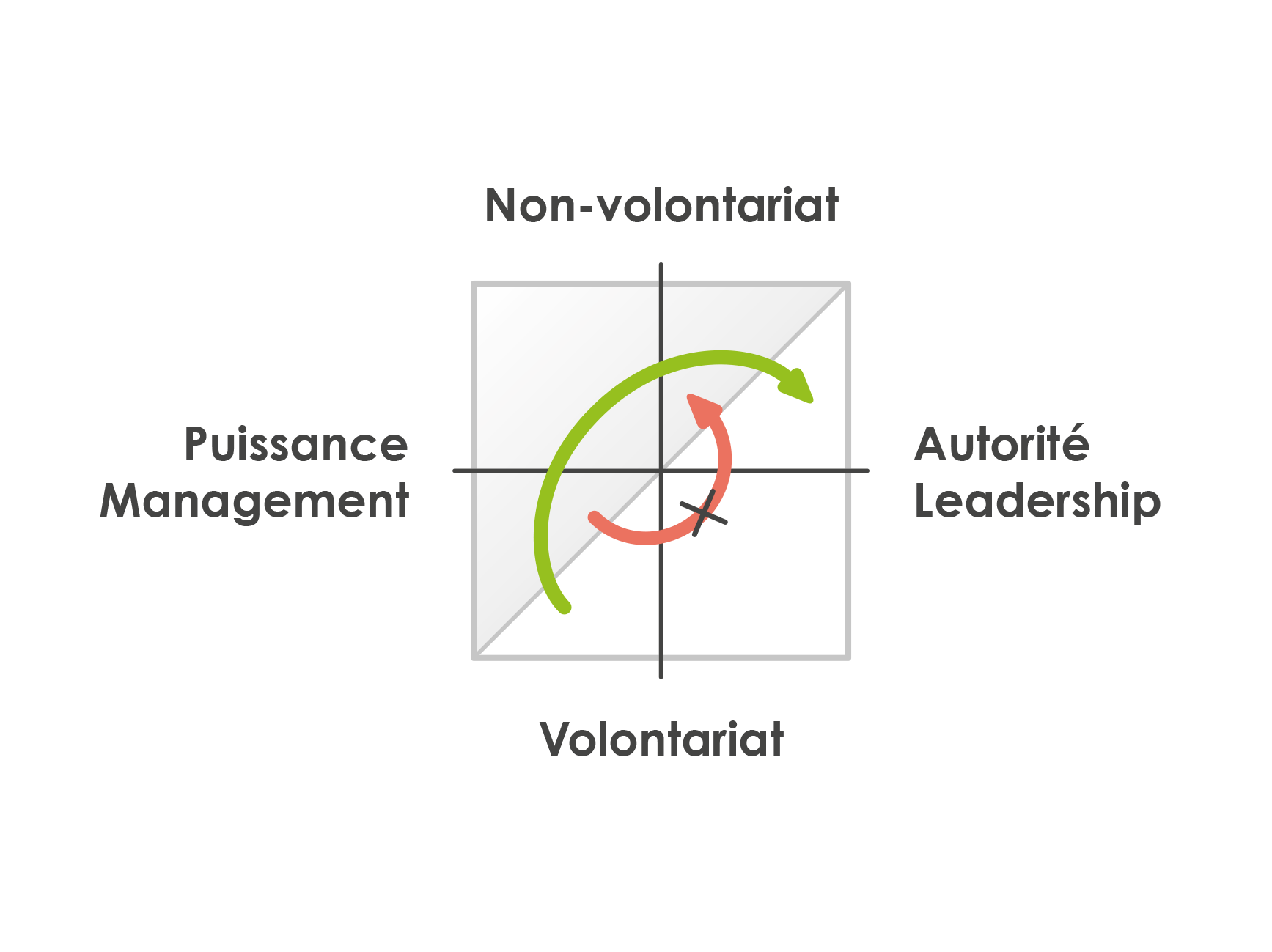 Alors que l’autorité permet aussi de faire jouer le pouvoir quand il le faut, il n’est presque jamais possible à l’homme de pouvoir d’évoluer vers l’autorité. Il s’agit donc ici d’une question d’image de l’homme dans le leadership et d’efficacité.